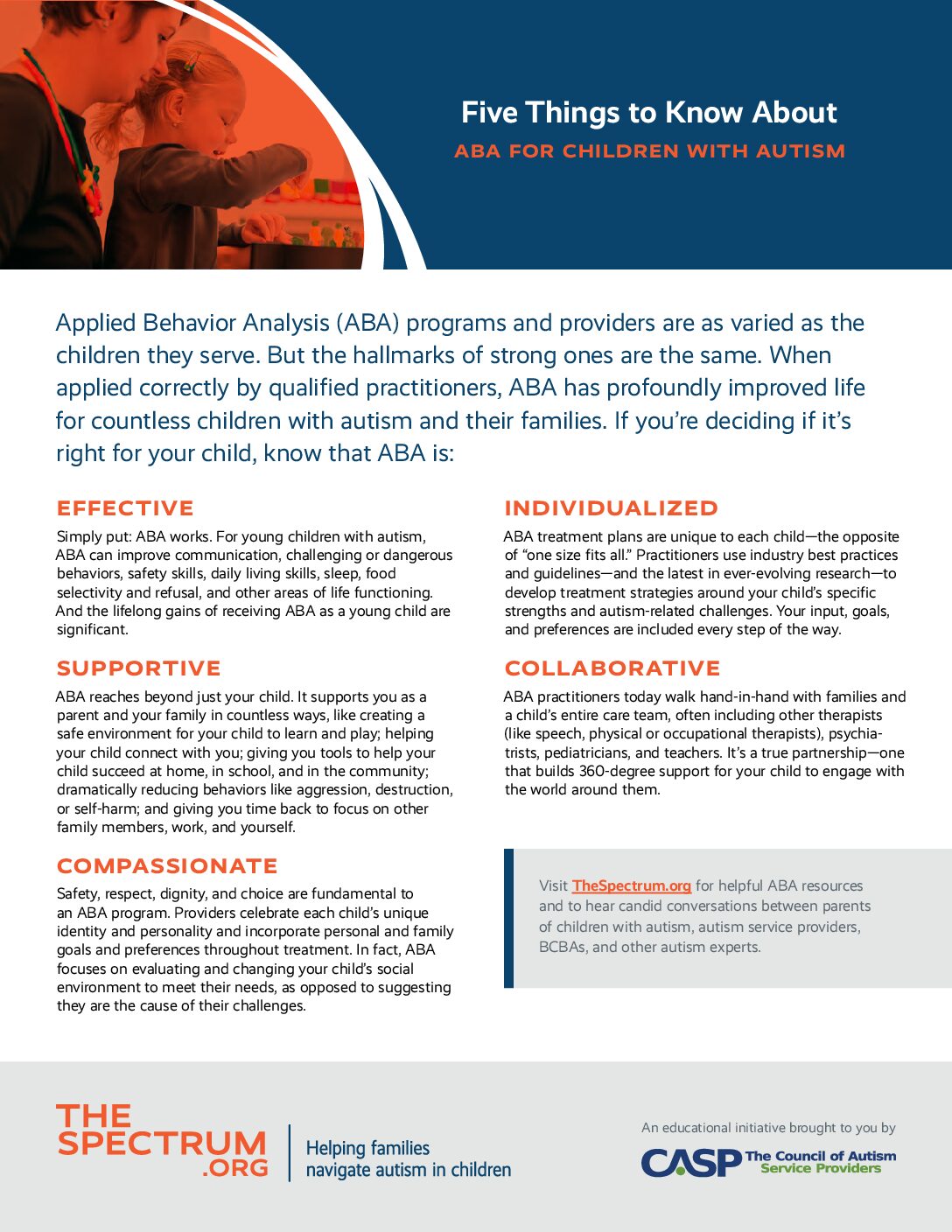 One-on-one ABA therapy and caregiver collaboration.